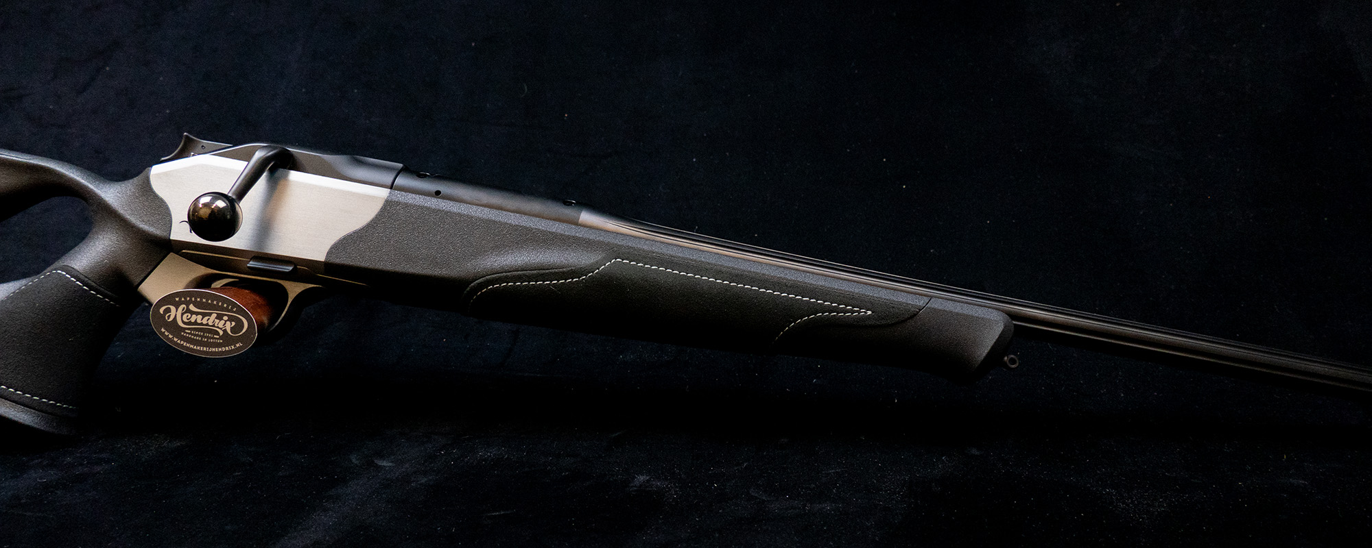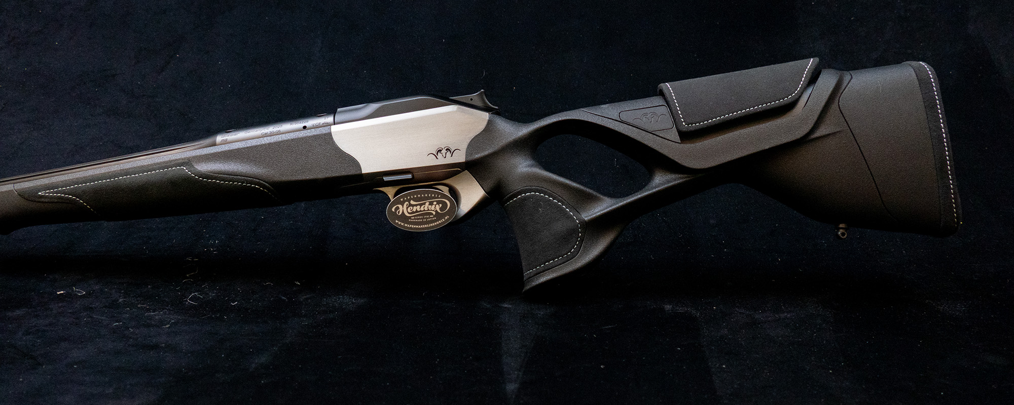 - Ergonomisch perfecte Ultimate duimgatkolf in zwart met verstelbaar wangstuk in leer.